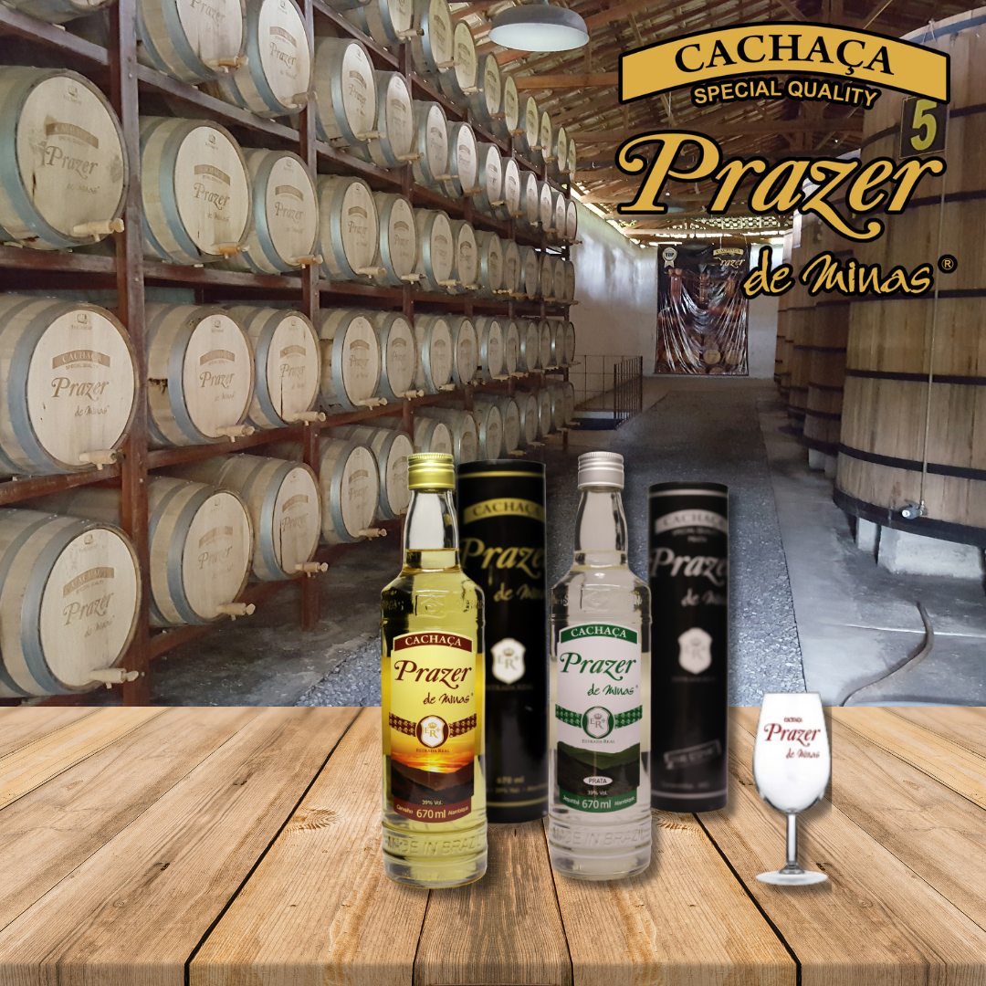 - *01 Garrafa Prazer de Minas Fina* (670 ml): Envelhecida por 2 anos em barris de Carvalho Europeu, resultando em uma bebida sofisticada e de sabor marcante.